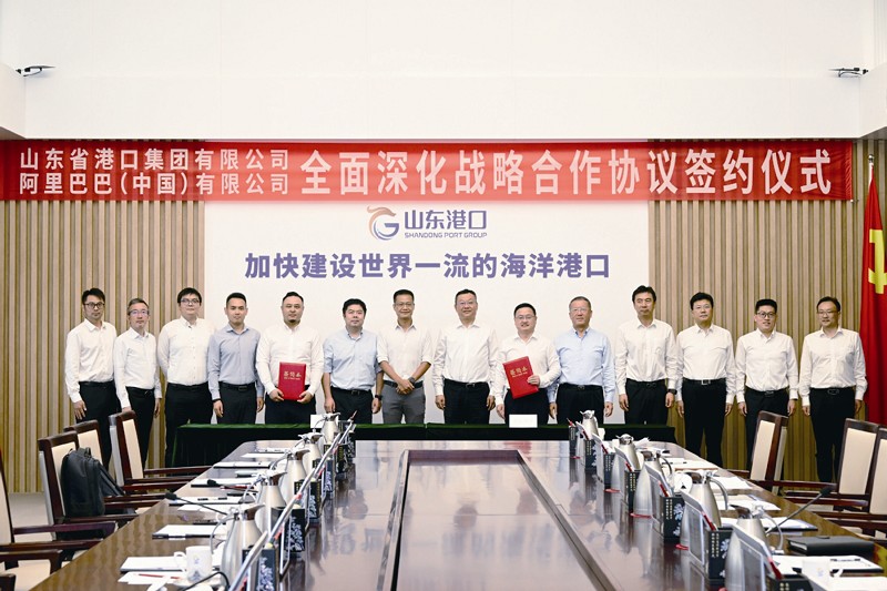 本报讯7月26日,山东省港口集团有限公司与阿里巴巴签署了全面深化战略合作协议。未来,双方将在智慧绿色港口建设方面深化合作,探索全程物流创新服务模式,打造东北亚国际航运枢纽中心,进一步提升双方全球资源配置能力和协同创新能力。