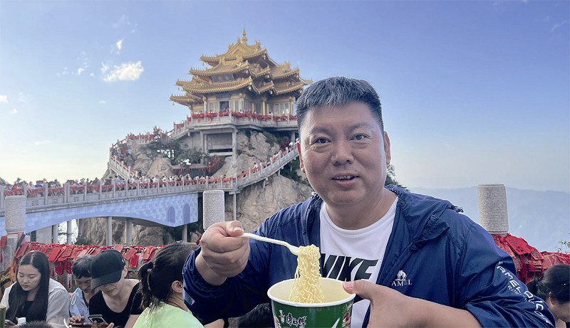 河南方管有限公司总经理韩富伟说:“平时应酬多,身体胖,通过爬山,除了看风景,也带着孩子磨炼一下意志。”“都说老君山吃泡面有讲究,除了欣赏到了金顶的绝美风景,我还真的体验了一把。就着美景,那叫一个酸爽!”郑州宏泰钢管总经理苏永星开心地笑着对记者说,同时指着手机里的照片问:“我帅不帅?”