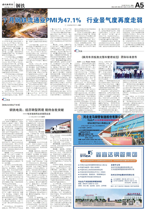 ■ 7月钢铁流通业PMI为47.1% 行业景气度再度走弱