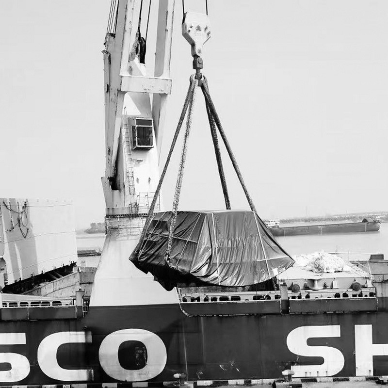 项目小组积极协调进港及吊装事宜,因设备单件重量较大,数量较多,小组成员沉着应对:一方面与发货方、客户保持实时沟通,同时密切关注匹配的航线资源,合理安排设备进港时间及超重货物设备落地事宜;另一方面详细规划进港路线,指派专人24小时全程对接设备集港、装船实施,避免设备在港期间产生的不必要费用,确保装船作业安全顺畅。