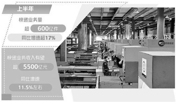国家邮政局发布的《2023年6月中国快递发展指数报告》显示,上半年,快递业务量超600亿件,同比增长超17%;快递业务收入有望超5500亿元,同比增长约11.5%。