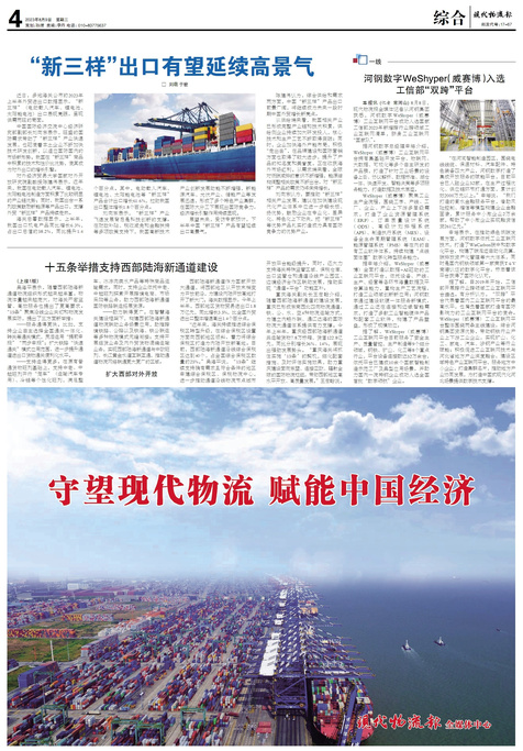 □王俊岭 西部陆海新通道对促进中国西部地区高水平开放具有重要意义。海关总署近日围绕畅通物流、助力开...