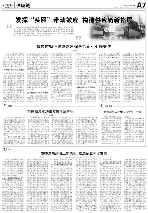 ■ 供应链韧性建设需发挥头部企业引领效应