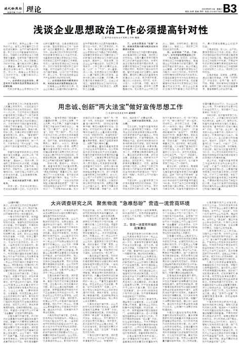■ 大兴调查研究之风 聚焦物流“急难愁盼”营造一流营商环境