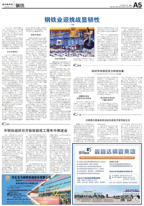 □周雷 今年上半年,全国钢产量5.36亿吨,同比增长1.3%;钢材产量6.77亿吨,同比增长4.4%;钢材出口4358...