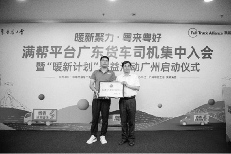 8月24日,由中华全国总工会指导,广东省总工会主办,广州市总工会和满帮集团承办的“暖新聚力粤来粤好”满帮平台广东货车司机集中入会暨“暖新计划”公益活动在广州启动。中华全国总工会基层工作部副部长黄龙,广东省总工会党组成员、经费审查委员会主任冯建华,广州市总工会党组成员、副主席夏俭保、满帮集团党委书记徐强出席指导,满帮平台30多名司机代表参加活动。活动现场进行了“满帮平台广东司机会员之家”授牌仪式,并为现场司机颁发工会会员证。中华全国总工会基层工作部副部长黄龙就做好货车司机等新就业形态劳动者建会入会工作提出要求。