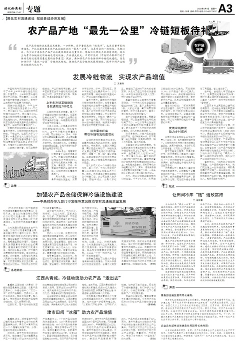 ■ 农产品产地“最先一公里”冷链短板待补