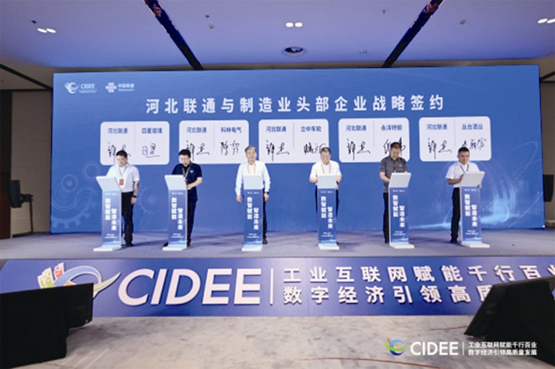 本报讯 (记者朱睿颖) 9月7日,在中国联通承办的2023中国国际数字经济博览会“工业互联网+智能制造论坛”上,中国联通河北省分公司(以下简称“河北联通”)分别与河北永洋特钢集团有限公司、沧州四星玻璃股份有限公司、河北邯郸丛台酒业股份有限公司、石家庄科林电气股份有限公司、保定市立中车轮制造有限公司5家河北省制造业头部企业签署战略合作协议。