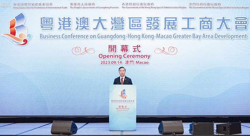 本报讯(记者马敬泽)9月14日,以“大湾区、大战略、大交流、大发展”为主题的首届粤港澳大湾区发展工商大会在澳门开幕。本届大会由中国国际贸易促进委员会、广东省人民政府、香港特别行政区政府、澳门特别行政区政府主办,来自20个国家和地区的逾千名各界人士参加会议。