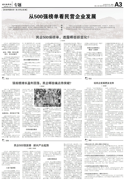 □华卓玛 9月12日,全国工商联发布2023中国民营企业500强榜单和《2023中国民营企业500强调研分析报告》。...