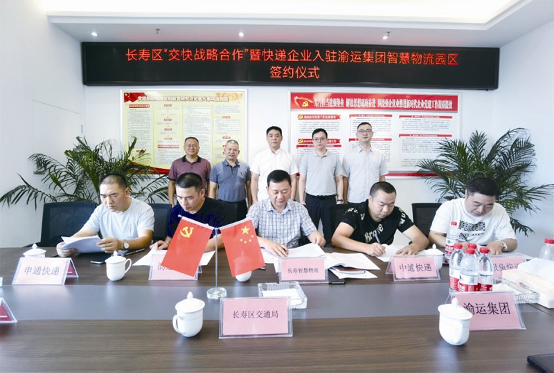 本报讯 近日,位于重庆市的长寿智慧物流中心与中通等快递企业集中签订协议,正式引入中通、圆通、申通、韵达、极兔5家快递企业集体入驻长寿智慧物流园区,共同打造长寿区农村三级物流体系区级分拨中心。