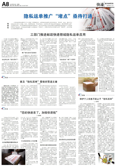 □ 吴学安 推广应用隐私运单是贯彻落实个人信息保护法、保障寄递用户个人信息安全的有效举措。国家邮政局...