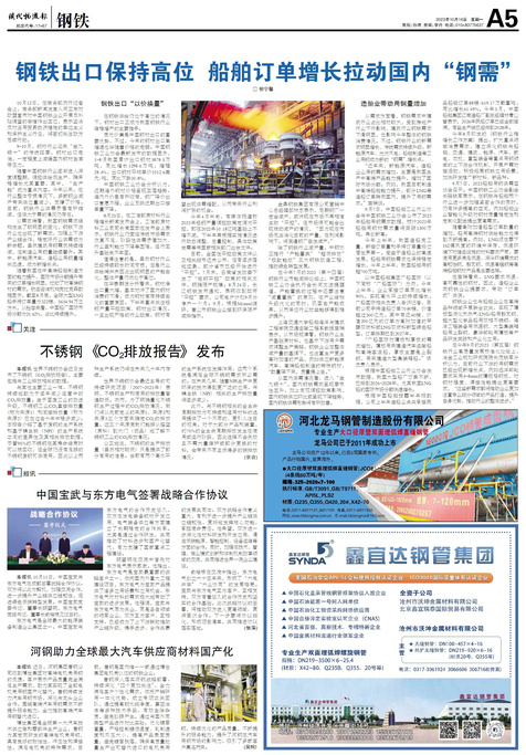 ■ 钢铁出口保持高位 船舶订单增长拉动国内“钢需”