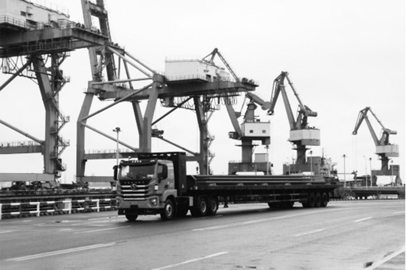 此次友道智途智能重卡运输的宽厚板是应用于建筑、机械制造、船舶等领域的特有钢材,因超长、超宽、超厚的产品特性,使其在运输过程中,一直存在人工装卸难度大、运输效率低的问题,加之运输场景近似社会开放道路,涉及龙门吊、岸桥吊、码头和仓库等区域,且涵盖人车等各类交通参与者,路况环境复杂。这对运输安全、成本、效率等方面都提出不小的挑战。