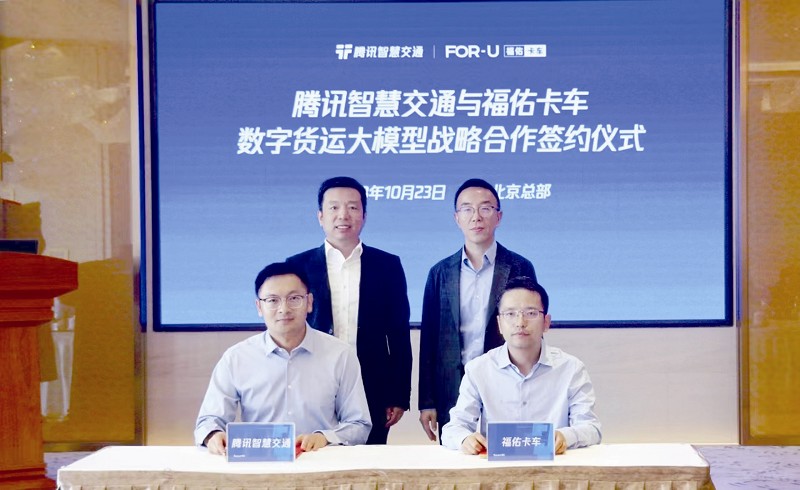 本报讯10月23日,福佑卡车与腾讯举行签约仪式,围绕共创首个数字货运大模型达成全面战略合作。双方将基于大模型技术在数字货运领域展开共创、共建,通过深度应用促进运输效率和服务体验全面升级。