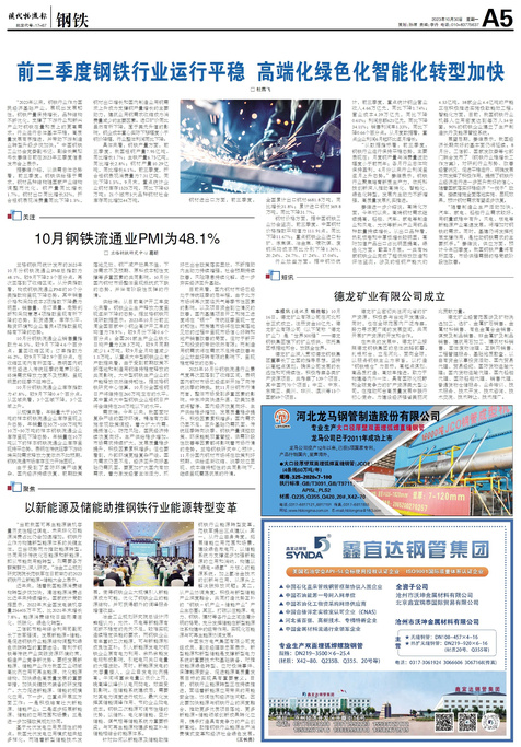 ■ 前三季度钢铁行业运行平稳高端化绿色化智能化转型加快