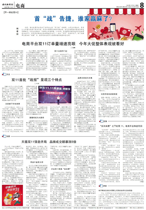 ■ 电商平台双11订单量增速亮眼 今年大促整体表现被看好