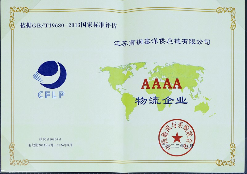 此次获评国家4A级物流企业资质,对提升品牌知名度和市场影响力具有重要意义,体现出南钢鑫洋供应链正朝着更规范、更标准、更现代化的方向积极健康发展。