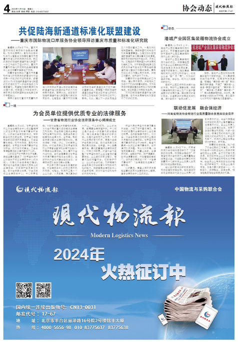 本报讯11月8日下午,重庆市国际物流口岸服务协会副会长夏耘、秘书长蒋啸冰、副秘书长李淑秋与办公室副主任...
