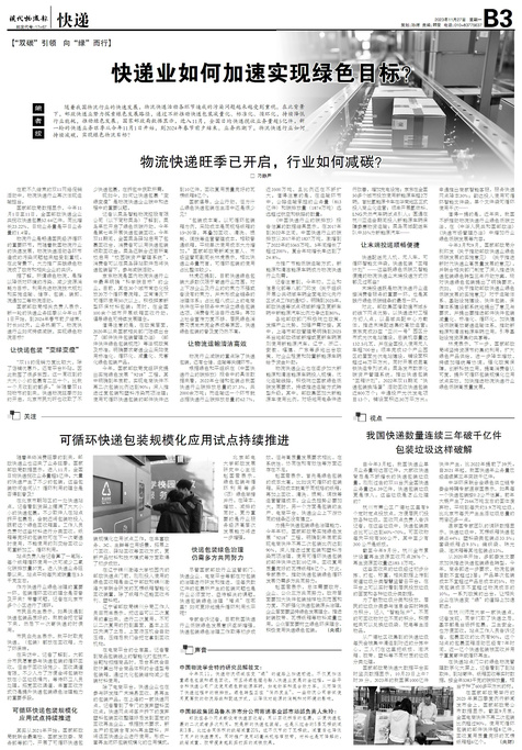 中国物流学会特约研究员解筱文: 今年双11,快递物流领域在变“绿”的道路上加速前进,不仅更加注重绿色包...