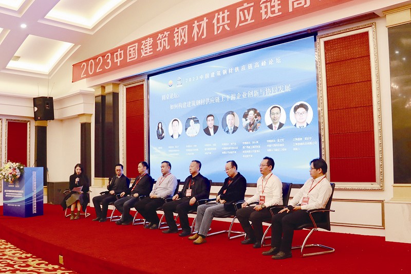 会上,河钢股份营销中心长材销售部副部长田占广,河南省鼎鼎实业有限公司总经理苏峰,建龙集团营销部高级专家刘瑄,中国建筑研究院认证有限公司高级专家刘子金,原广西建工集团智慧制造有限公司董事长、建筑钢材供应链资深专家李长国,中建八局科技建设有限公司副总工程师温卫军,上海蔚建科技有限公司董事长梁衍学等多位嘉宾围绕“如何构建建筑供应链上下游企业创新与协同发展”展开讨论。