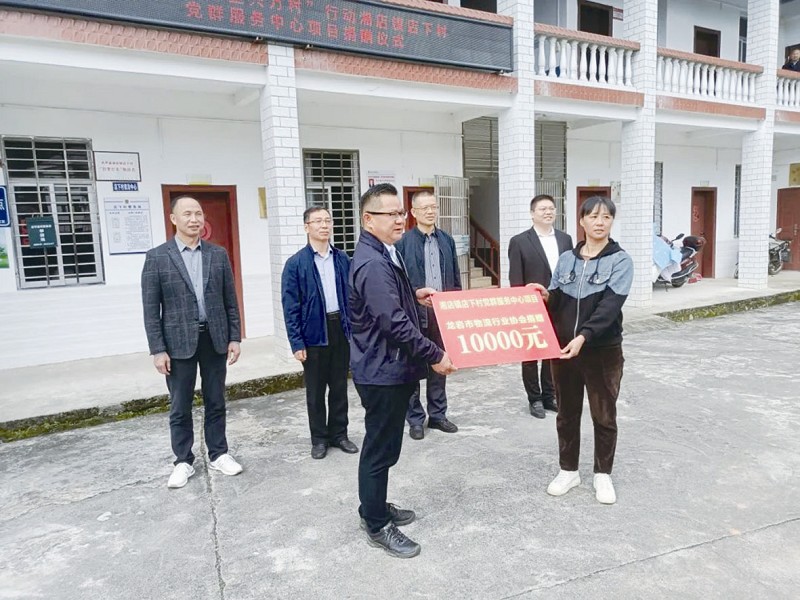 本报讯日前,福建龙岩市委统战部副部长、市工商联党组书记蒋海鸿和龙岩市工商联党组成员、副主席廖连强带领市级“万企兴万村”行动武平县湘店镇店下村结对帮扶小组到结对村开展走访对接活动,并举行店下村党群服务中心项目捐赠仪式,龙岩市物流行业协会会长沈庆荣、秘书长何玉珍参加活动。