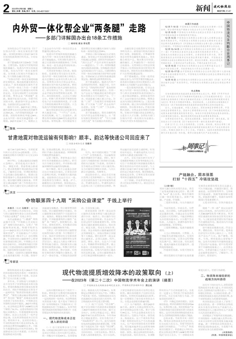 □中国物流与采购联合会副会长兼秘书长崔忠付 2023年是经济复苏期、过渡期、也是挑战和机遇期。曲折前行...