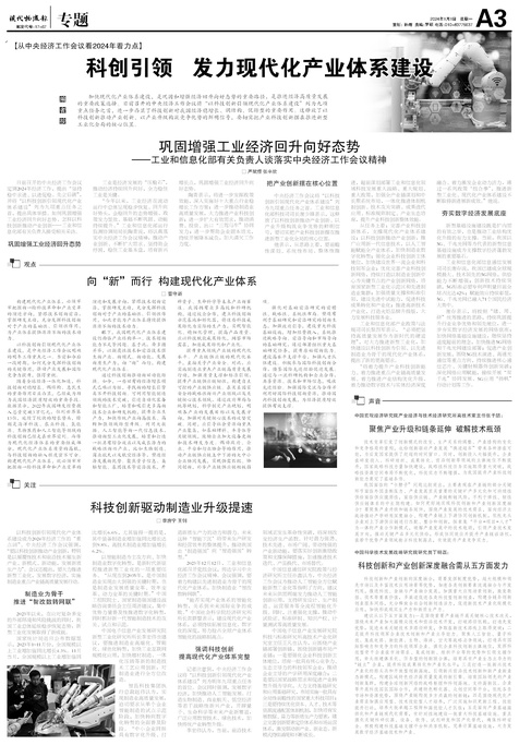 □李唐宁 王钊 以科技创新引领现代化产业体系建设成为2024年经济工作的“重点词”。中央经济工作会议强调,...