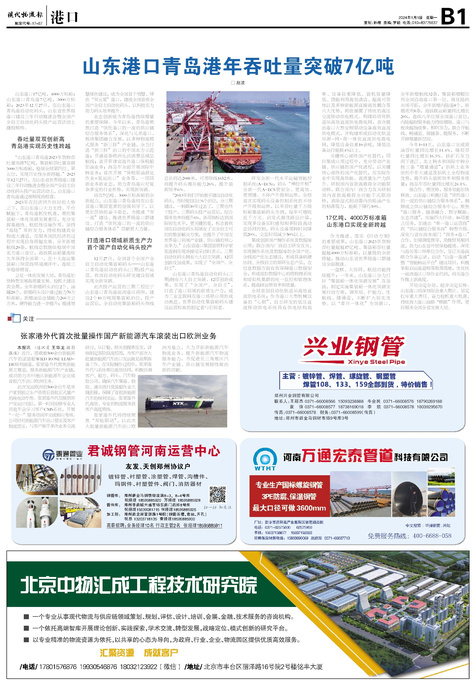 ■ 山东港口青岛港年吞吐量突破7亿吨