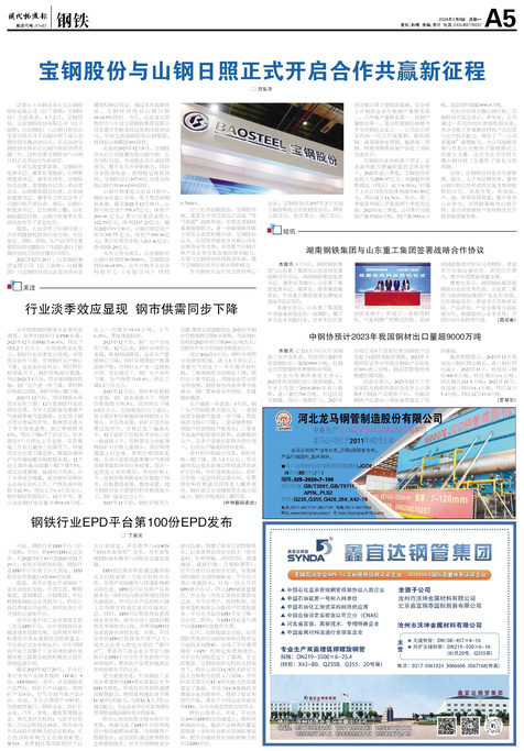 □ 丁晋灵 日前,钢铁行业EPD平台(以下简称:平台)第100份EPD正式发布。从2022年5月19日到2023年12月29...