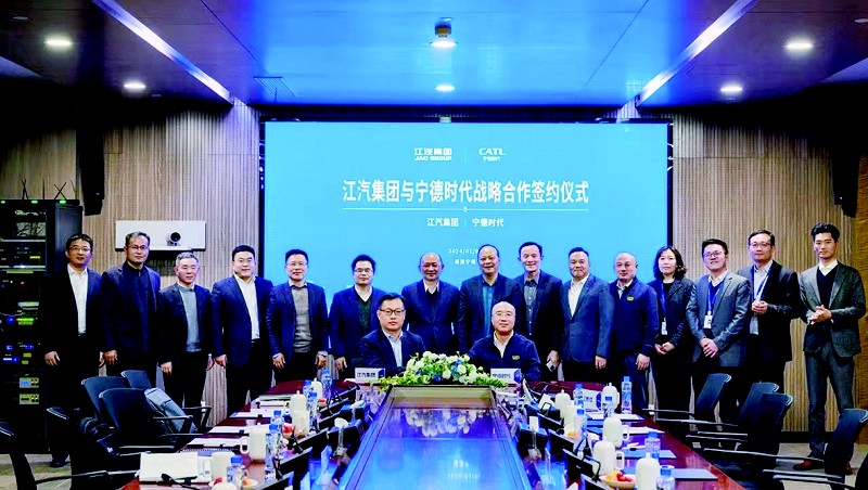 本报讯 1月6日,宁德时代与江汽集团签署战略合作协议。根据协议,双方将在动力电池供应,换电技术导入,新技术、新产品联合开发和应用,国内外市场拓展,产业链降碳等方面开展积极合作,共同制定行动方案,共建战略联盟。