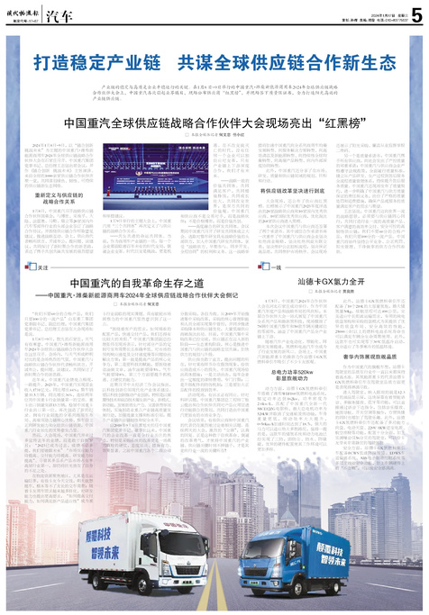□ 本报全媒体记者贾奥胜 1月5日,中国重汽2024年合作伙伴大会在河北石家庄成功举行。作为中国重汽年度产...