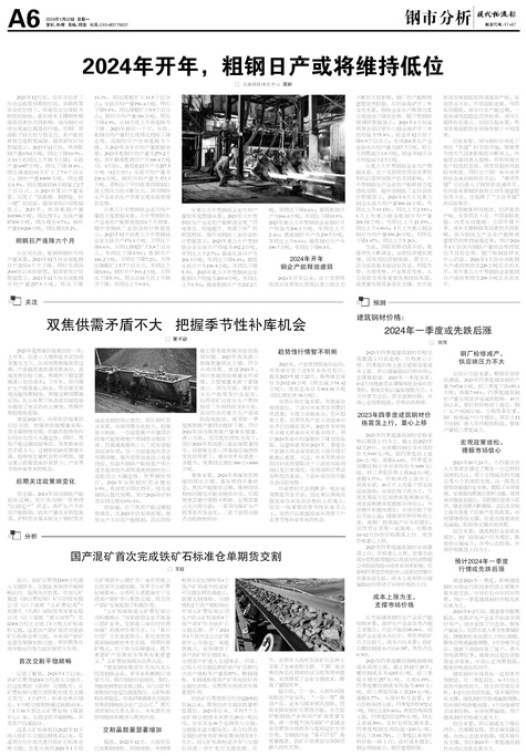 □ 刘萍 2023年四季度建筑钢材价格呈现震荡上行的走势,价格重心上移。四季度价格上涨主要原因是成本上涨...
