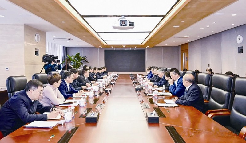 本报讯 2月22日,中国宝武钢铁集团有限公司(以下简称:宝武)党委书记、董事长胡望明,宝武总经理、党委副书记侯安贵在宝武大厦与来访的山东省委常委、济南市委书记刘强,济南市委副书记、市长于海田一行就进一步深入推进济南市与宝武的合作进行了座谈交流。