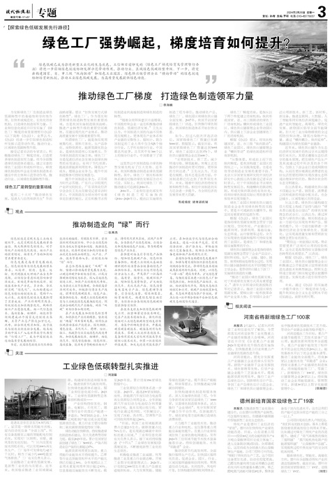 □李海楠 为发挥绿色工厂在制造业绿色低碳转型中的基础性和导向性作用,加快形成规范化、长效化培育机制...