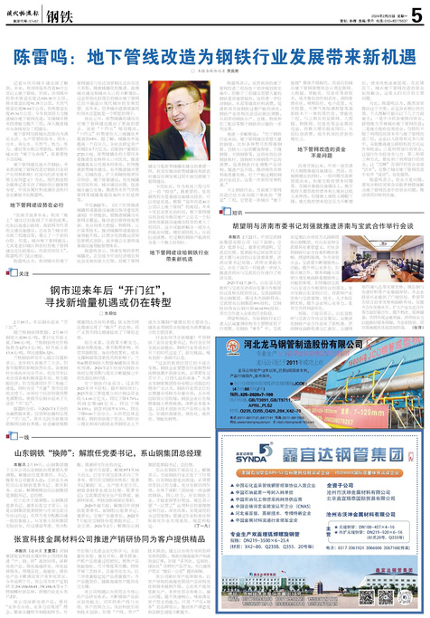 ■ 陈雷鸣:地下管线改造为钢铁行业发展带来新机遇