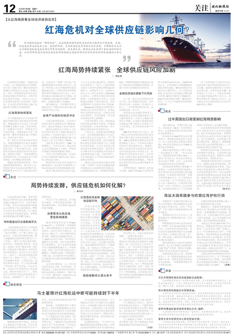 ■ 红海局势持续紧张 全球供应链风险加剧