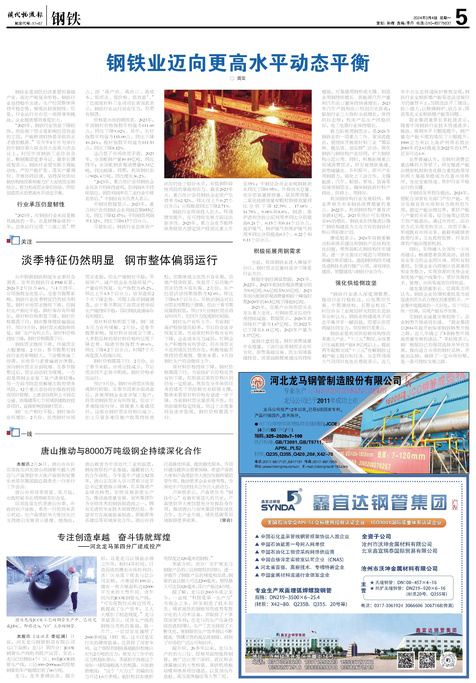 ■ 钢铁业迈向更高水平动态平衡