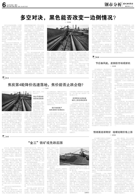 □ 付相慧 春节假期结束,钢企陆续回归正常的生产秩序,短流程钢企于2月底复工情况增多,补库意愿显现,...