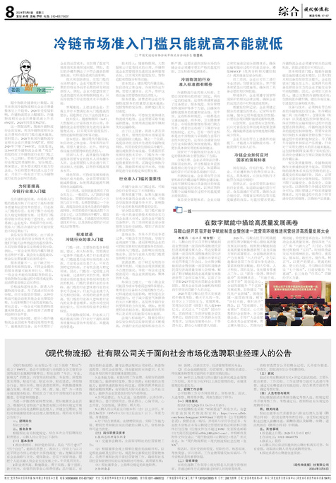 ■ 《现代物流报》社有限公司关于面向社会市场化选聘职业经理人的公告