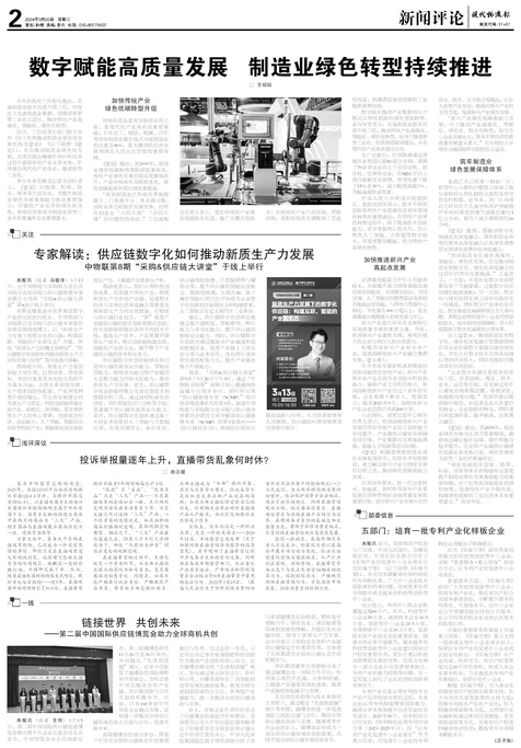 本报讯(记者 王伟)3月15日,第二届中国国际供应链促进博览会推介暨中外企业交流会在北京举办。中国贸促会...