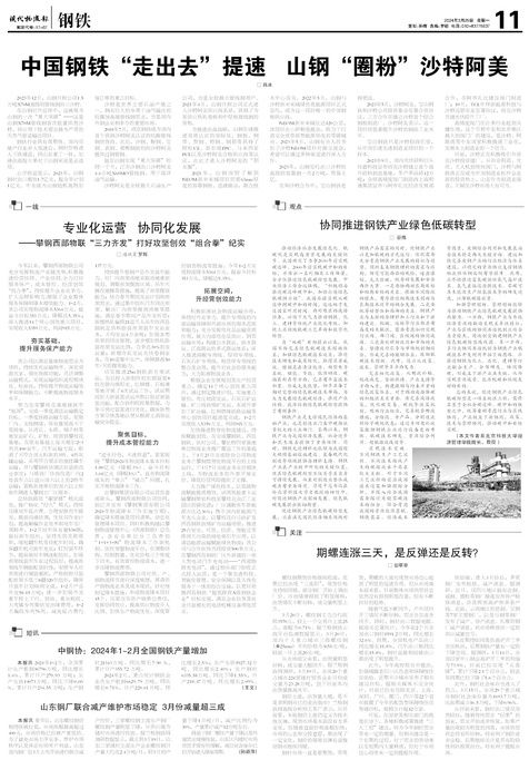 ■ 中国钢铁“走出去”提速 山钢“圈粉”沙特阿美