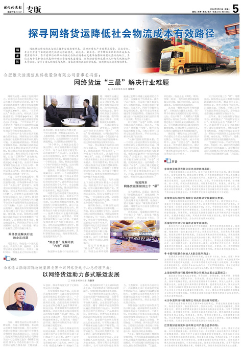 □本报全媒体记者马敬泽 网络货运是一种基于互联网平台,利用技术手段对传统货运行业运作模式进行数字化...