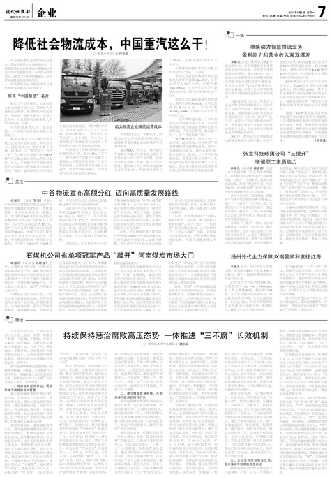 ■ 中谷物流宣布高额分红 迈向高质量发展路线