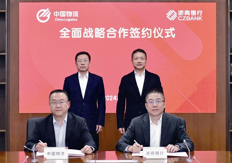 本报讯日前,中国物流集团有限公司(以下简称:中国物流)与浙商银行股份有限公司(以下简称:浙商银行)在浙江杭州签署战略合作协议。中国物流党委书记、董事长李洪凤,浙商银行党委副书记、行长张荣森见证签约并就深入开展合作进行友好会谈。中国物流党委常委、总会计师刘成,浙商银行党委委员、副行长景峰代表双方签署协议。