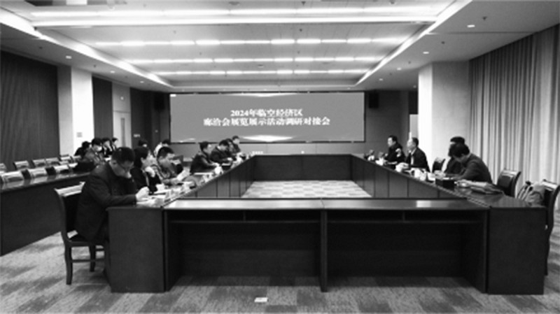 4月8日上午,乔晓林一行于北京大兴国际机场临空经济区(廊坊)召开专题调研对接会,冀物联秘书长李信龙、河北省会展促进中心主任葛艳华出席会议,临空经济区(廊坊)党工委委员、河北临空集团有限公司党委书记、董事长韩金虎,河北临空集团有限公司党委委员、集团副总经理耿少林等代表临空经济区(廊坊)出席会议。