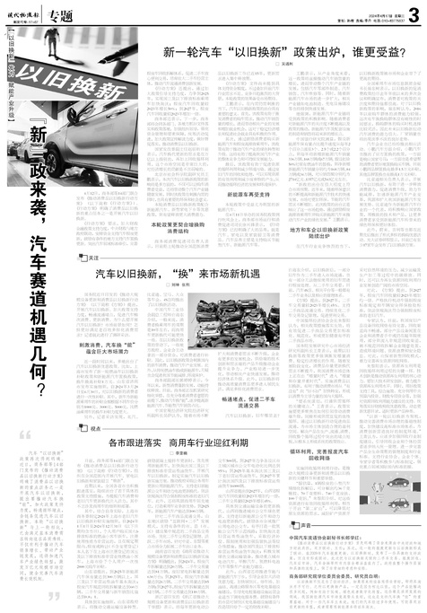 汽车“以旧换新”政策再次得到明确。近日,商务部等14部门发布的《推动消费品以旧换新行动方案》明确了消费品...