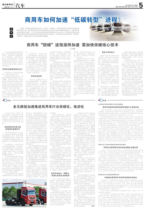 ■ 商用车“脱碳”进程亟待加速 需加快突破核心技术