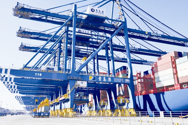 黄海之滨,胶州湾畔,岸线绵延。在青岛港自动化码头,汽笛声阵阵,远洋巨轮列队入港,桥吊作业有条不紊。