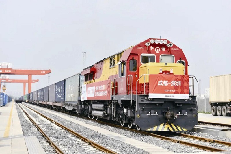 本报讯4月26日,四川成都城厢站至广东深圳平湖南站快速集装箱班列正式开行,成都与深圳城际间的货运集装箱班列实现了每周四列双向对开。
